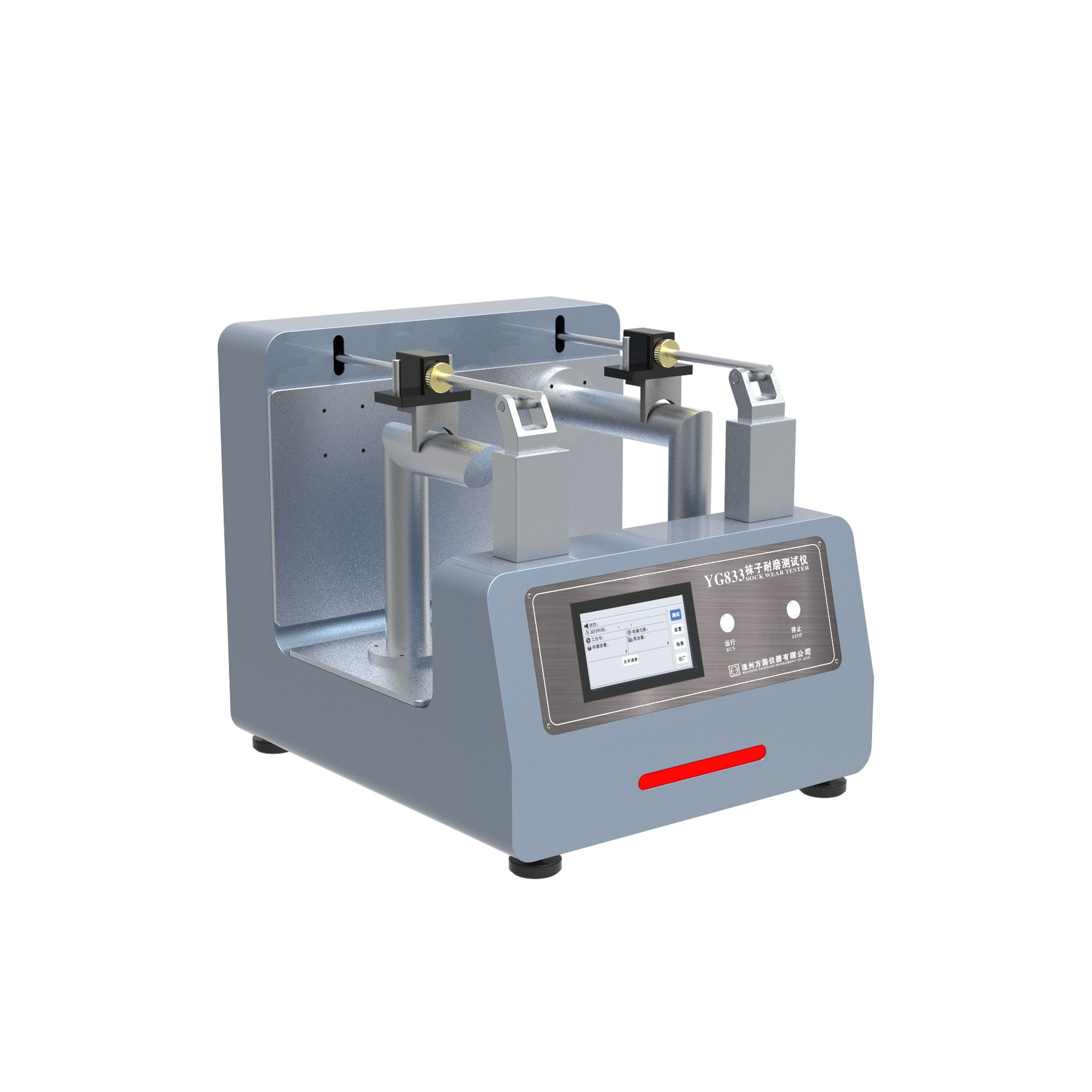YG833襪子耐磨測試儀 EN 13770-2002紡織品 針織鞋襪耐磨性的測定中方法C。 測試原理: